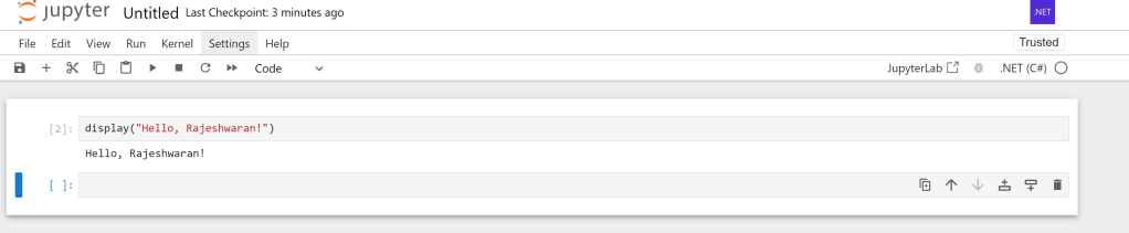 If you are trying to install and try Jupyter Notebook for .Net (C#), you will see a lot of install instructions for the .Net Core 3.1.2 with dotnet-try command. .Net Core 3.1.2 is out of support. I had the same issue here and in this post, I am trying to document how to get Jupyter Notebook on my Windows machine to work with .Net code support.